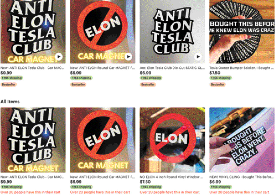▲夏威夷設計師希勒(Matt Hiller)網店的反對馬斯克貼紙成為熱銷產品。Esty網站截屏
