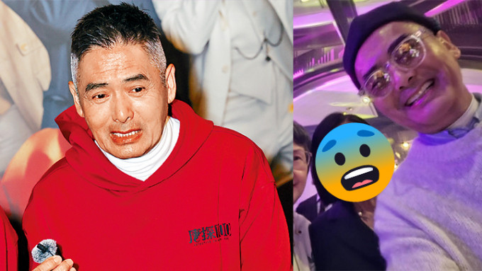 ▲周潤發日前再以死亡角度低炒,與發嫂等合照,卻令發嫂臉型突變。
