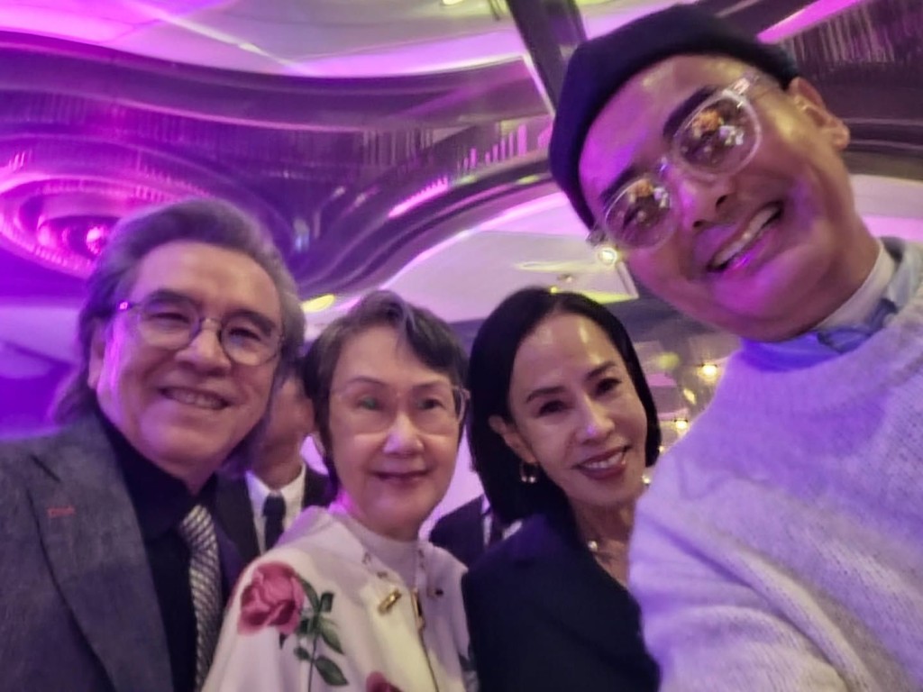 周潤發在“香港電影導演會周年晚宴暨年度頒獎典禮”遇上很多圈中老友,姜大衛在IG發文,留言表示:“香港電影導演會晚會偶遇發哥發嫂?!辈⑸陷d四人的合照,相片可見,是由周潤發掌鏡拍攝,發嫂就站在周潤發身旁,有小鳥依人感覺。不過有網民留意到,周潤發拿相機的角度非常低,拍到發嫂似“馬面”一樣長,網民都擔心周潤發會被發嫂詐型。
