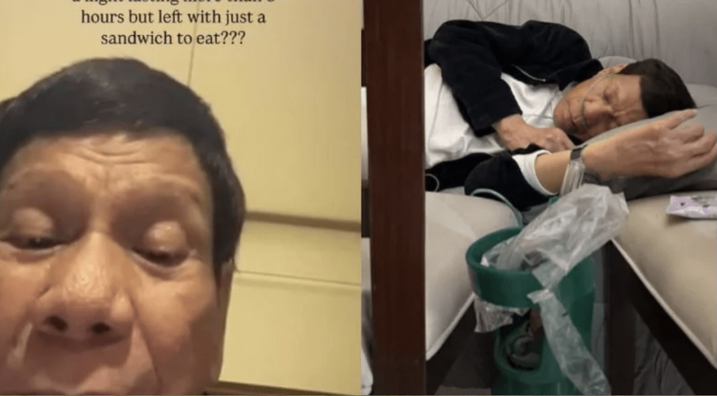 她表示,父親是在沒有逮捕令的情況下被帶走,遭非法拘留。她又在IG分享了一張杜特爾特在沙發上休息的照片,指父親被剝奪基本的醫療照護權利,并投訴父親在長達8小時的航班上,竟只獲分配一份三明治果腹,質疑父親受到不當對待。