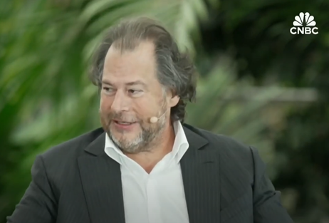 ▲當地時間3月12日,馬克·貝尼奧夫接受CNBC采訪,圖為采訪視頻截圖。