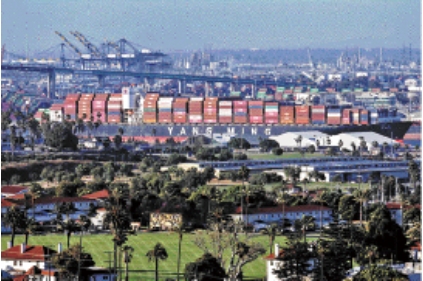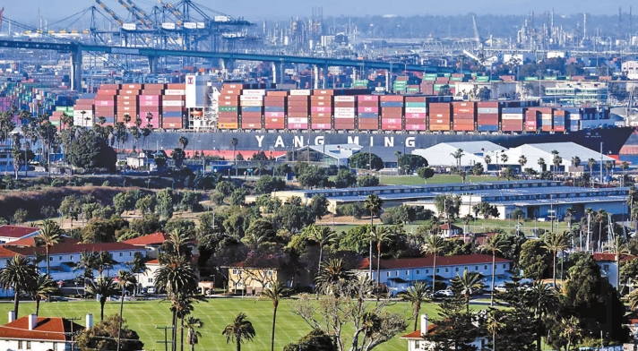 ▲特朗普政府關稅政策反復無常,對各行各業造成影響。圖為洛杉磯港貨船。洛杉磯時報