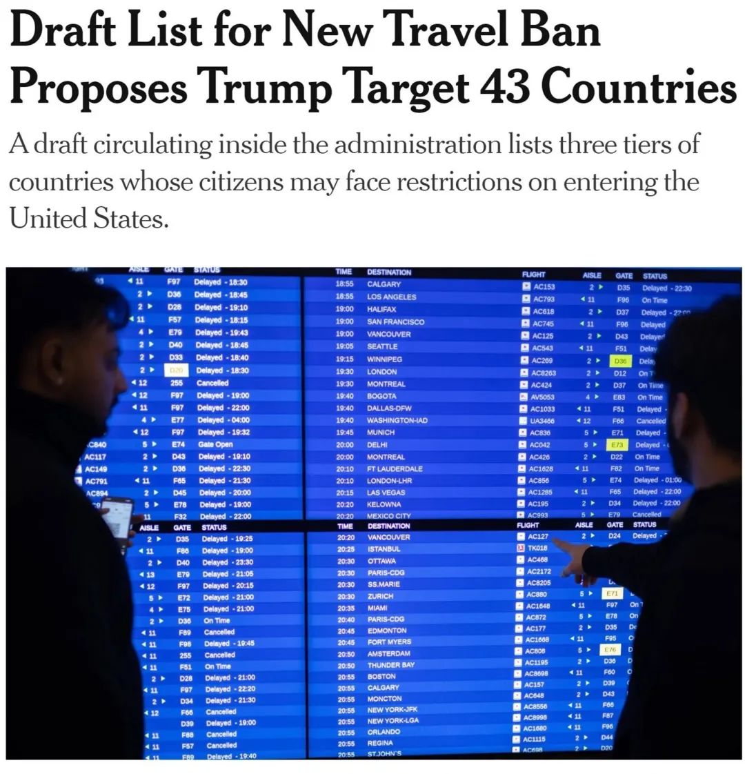 據美媒報道,特朗普政府正在考慮對幾十個國家的公民實施旅行簽證限制。