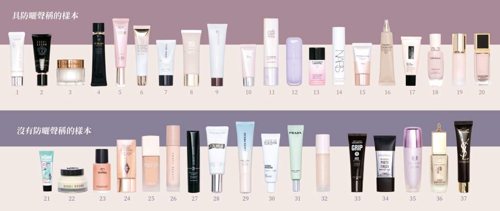 37款測試樣本中,只有“Hourglass礦物質妝前乳 SPF15”及“Giorgio Armani 隱逸美肌妝前底霜”不含可能干擾內分泌的防曬成分,以及可能刺激皮膚或導致過敏的反應成分和物質。