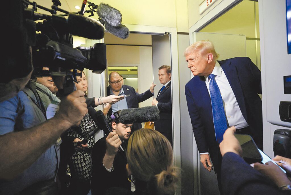 ▲美國總統特朗普計劃于美東時間18日與俄羅斯總統普京通話,協商如何結束俄烏戰爭。圖為特朗普16日在空軍一號上接受媒體訪問。(路透)