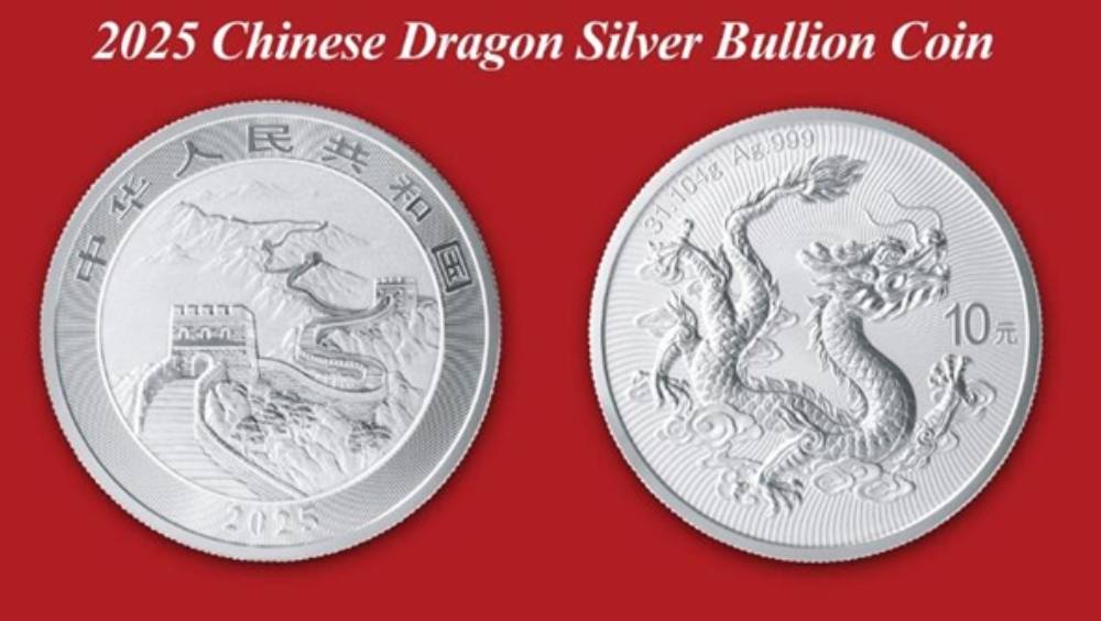 中國人民銀行(央行)今(3月18日)天發行2025版中國龍銀質紀念幣,該銀質紀念幣為中華人民共和國法定貨幣。正面為長城圖案,并刊國名、年號,背面圖案為中國龍形象,輔以祥云圖案組合設計。該枚銀質紀念幣,含純銀31.104克,面值10元(人民幣,下同),最大發行量200萬枚,將在內地各大商業銀行發行。
