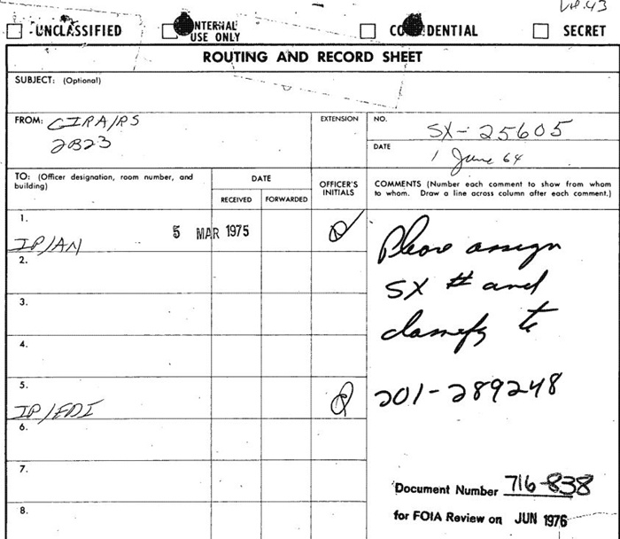▲CIA調查記錄。圖片來源:美國國家檔案館