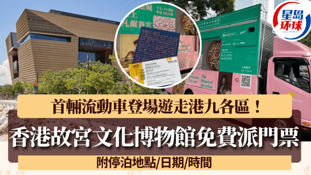 香港故宮博物館送免費門票!香港故宮文化博物館宣布推出首輛流動宣傳車,在指定日子游走港九各區,讓公眾認識特別展覽“當紫禁城遇上凡爾賽宮──十七、十八世紀中法文化交流”,只要完成簡單游戲,更有機會免費取得香港故宮特別展覽門票!本文整理香港故宮文化博物館流動宣傳車停泊地點、日期及時間,把握機會帶走香港故宮文化博物館派免費門票!