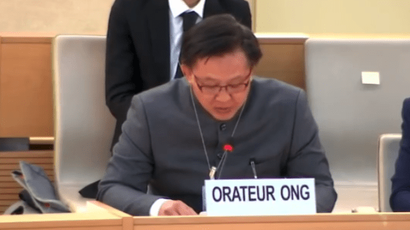 ▲何君堯在第58屆聯合國人權理事會會議上,為持BNO簽證移英港人發聲。影片截圖
