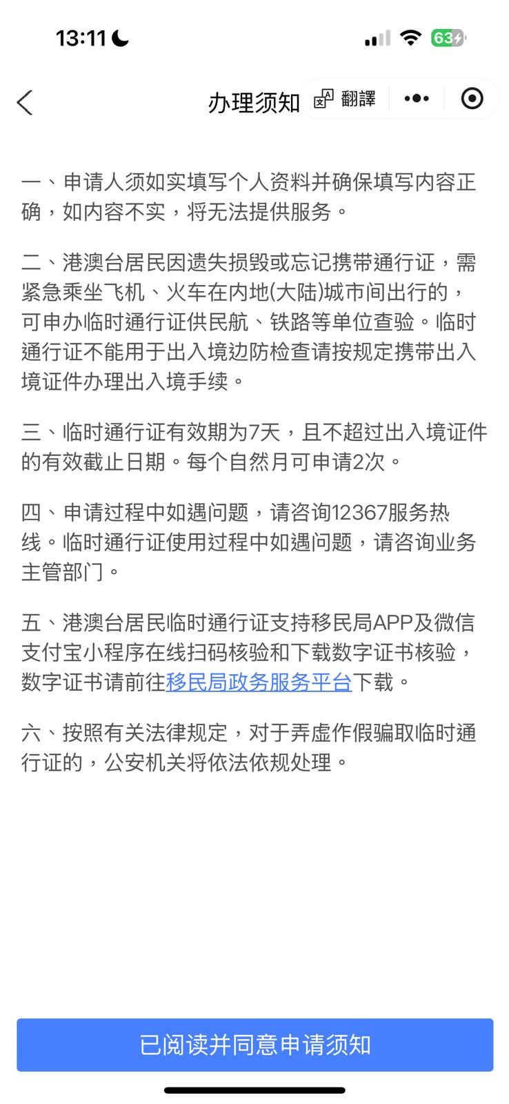 備注:一般而言,上午申領,下午才可取臨時通行證;下午申領,翌日才取得臨時通行證