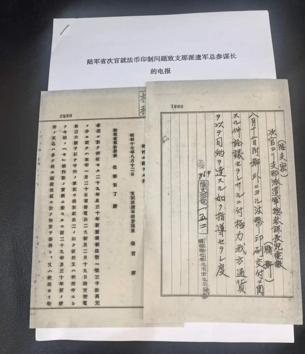 ▲侵華日軍在香港偽造國民政府法幣的日文檔案史料。 央視新聞