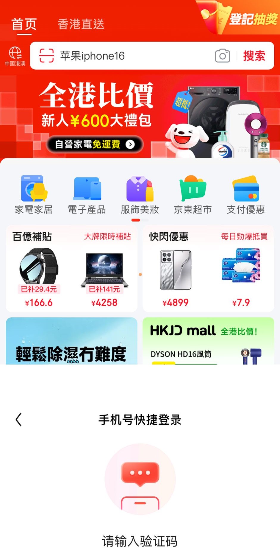 “京東”于近日推出專為香港客戶而設的四類優惠,新用戶注冊可領取高達¥600的迎新禮券外,全場貨品買滿¥188更包郵直送香港,而自營家電(即“京東”負責替第三方賣家配送)亦可享有30日包退、180日換新、免運費送上門等優惠。此外,“京東”承諾,若用戶購買后發現比其他香港平臺貴,可在提交訂單截圖申請差價補償。