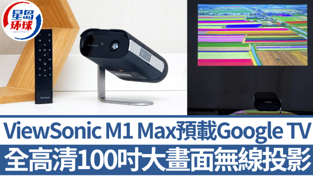 3年前ViewSonic開發出流動投影機M1系列,機身輕巧且附有支架可多角度投影,最吸引是支持WiFi連接,加上內置電池,真正做到真無線、零接駁,隨身帶著去到哪里都可以享受100吋畫面體驗。 最新抵港的M1 Max不但擁有原生1,080p解像度,還預載Google TV系統,作接口跟大家熟悉的智能電視無異,YouTube、Netflix、Max、Disney+統統有齊,登入即可串流播片。