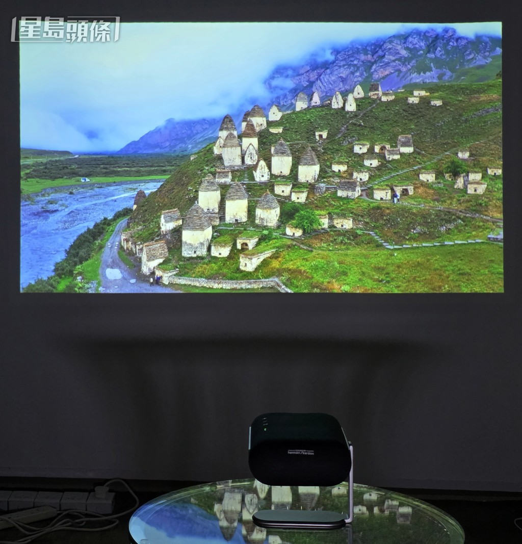 M1 Max音效也交足功課,機身裝有一對由Harman/Kardon調音的立體聲喇叭,不用另接音響系統,音量亦足以配合大畫面帶來震撼音效。 若然深夜時份投影不想打擾家人,可以經藍牙連接無線耳機,靜靜地睇片煲劇。