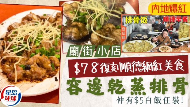 順德容邊排骨為廣東佛山順德容桂街道的一道經典民間美食,以其獨特“干蒸生焗”的制法而聞名,看似家常,卻將粵菜對火候與調味的極致追求展現得淋漓盡致,是許多食客專程到順德打卡的必吃菜! 像內地知名飲食自媒體品城記”、香港名廚張錦祥(Ricky)亦曾拍片探店介紹過這地道滋味。 近日,有網民就在社交平臺小紅書分享佐敦廟街小店“金發順德干蒸菜”就以這道順德名物“干蒸排骨”為招牌菜,而且$78就食到!