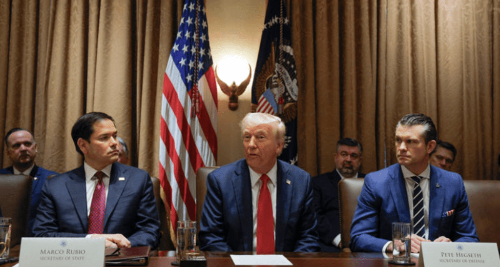 ▲美國總統特朗普及國務卿魯比奧、國防部長赫格塞斯。美聯社