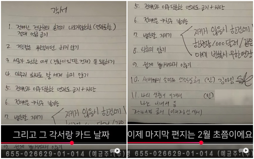 YouTube節目《橫豎研究所》26日晚間曝光金賽綸老公和摯友的受訪錄音檔,藉此證實金秀賢昔日曾和未成年的金賽倫交往過。但金賽綸和老公的相處切結書(保證書、承諾書)、分手信件,也意外成為另一個焦點。金賽綸夫妻共約定11點事項,其中強調不能和前任聯系、也不能情緒勒索對方。至于2人分開后,金賽綸寫給老公的手寫信也被公開,她坦言“每天都無比漫長,充滿不安”,還不對自責道歉,讓不少網友看了覺得心疼,忍不住直說“太苦命了”。