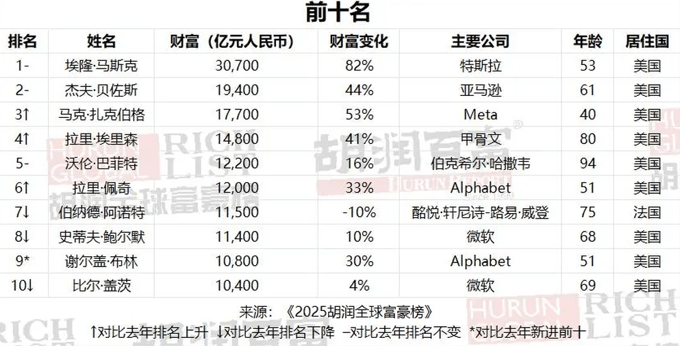 ▲胡潤百富榜,全球十大富豪。 胡潤全球富豪榜