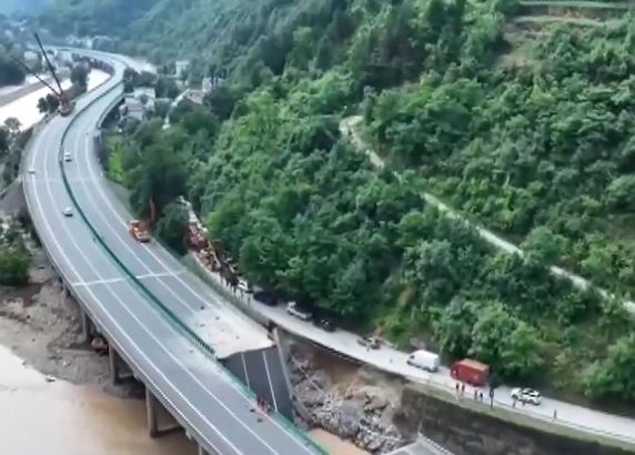 ▲陜西商洛市柞水縣境內的高速公路橋梁垮塌。
