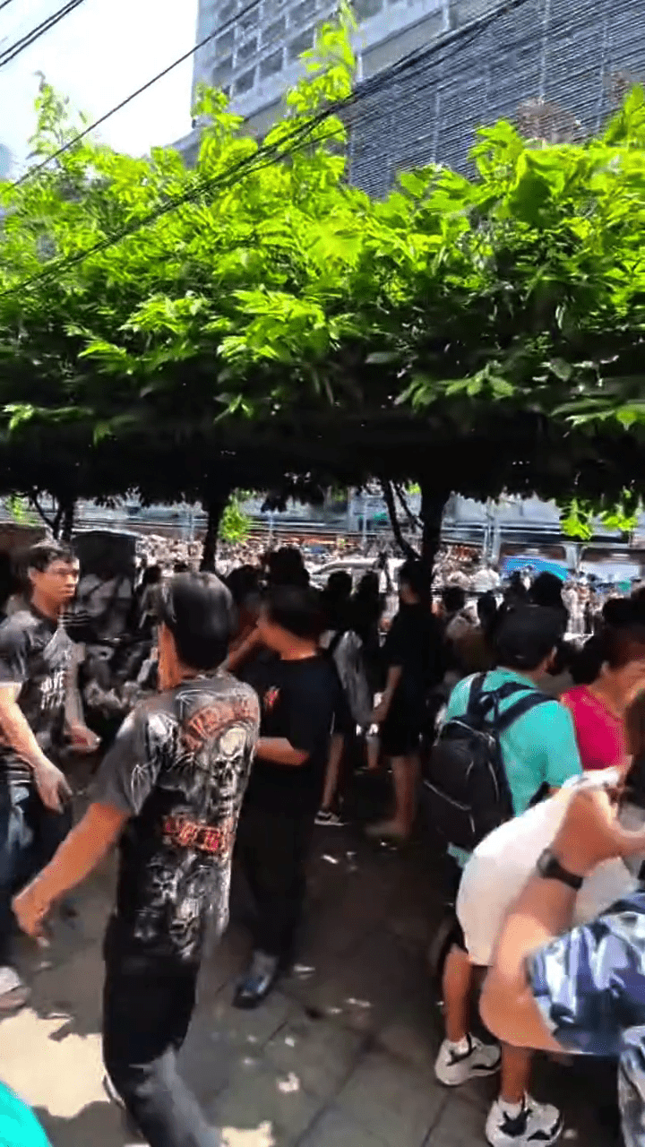▲水門街購物區大批民眾紛紛跑出街道暫避。FB:泰國粉絲大本營