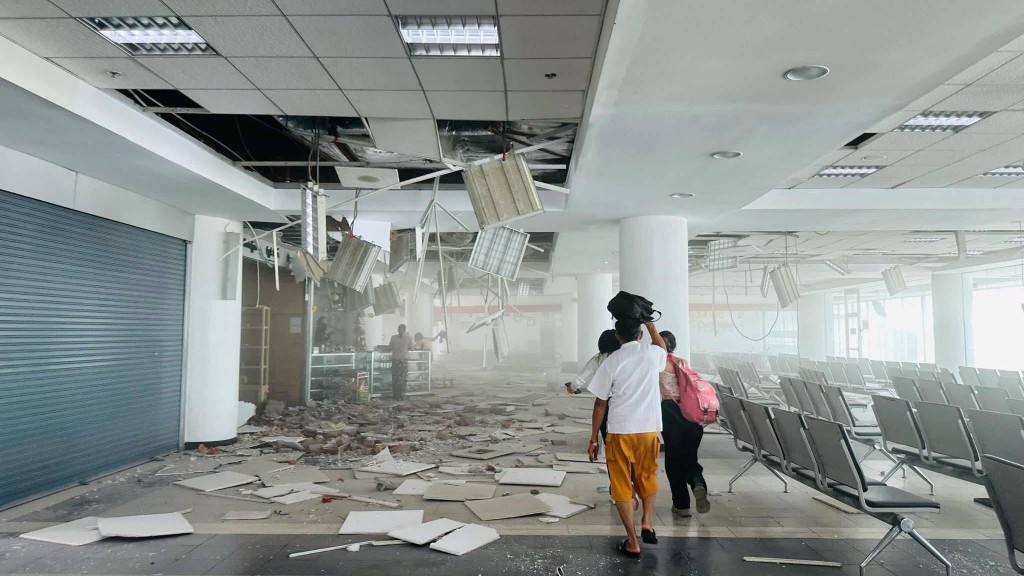 ▲緬甸曼德勒機場天花板坍塌。x.com@sentdefender