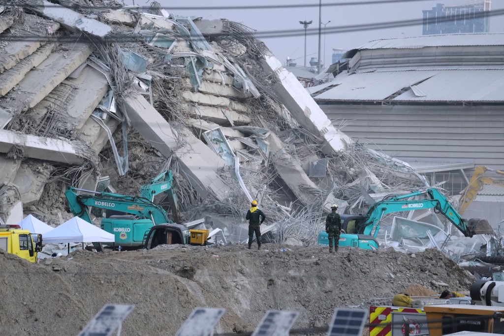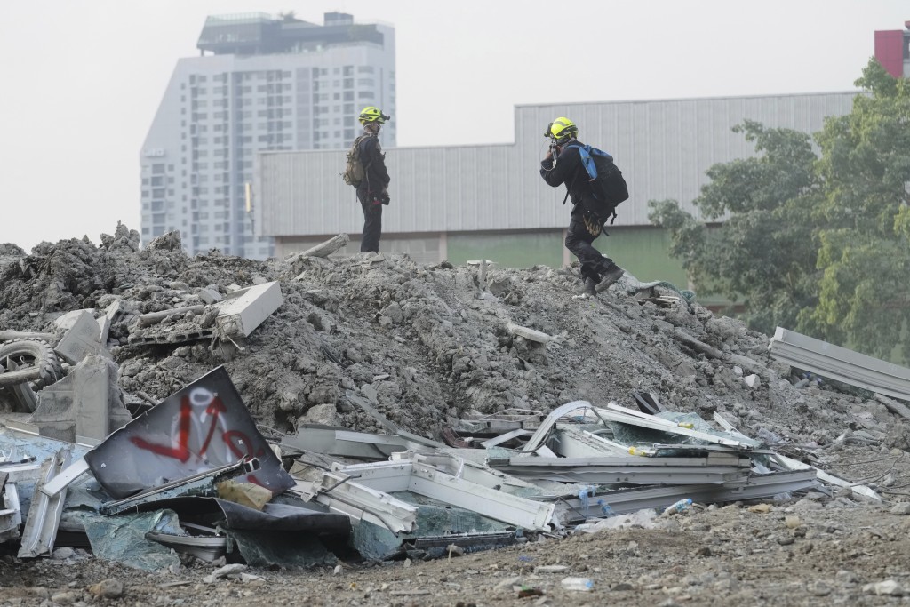 ▲搜尋人員繼續在倒塌大樓現場搜救。美聯社