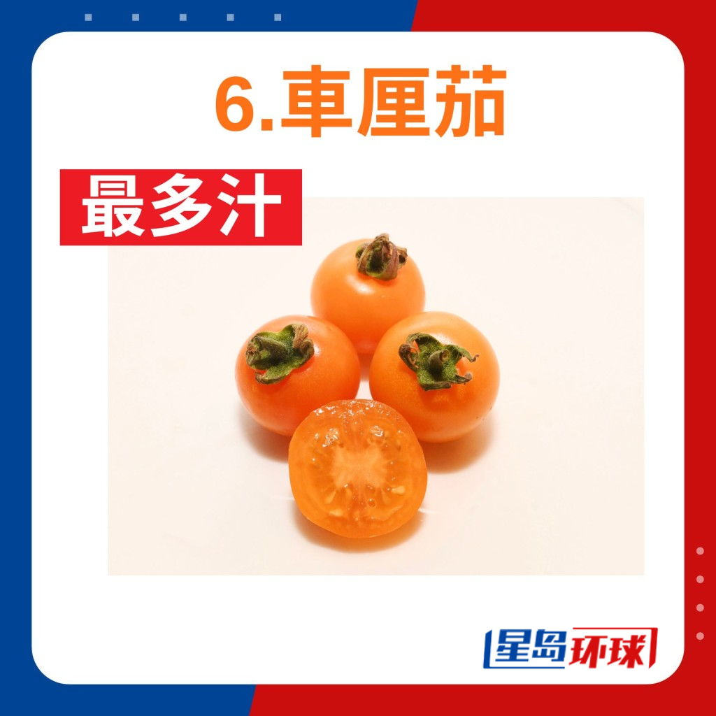 6. 車厘茄 皮薄爽甜 鮮艷橙黃 最多汁