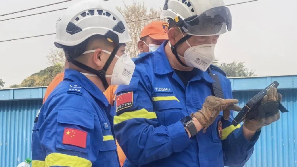 ▲岳麓藍天救援隊30日在曼德勒救出1名幸存者。 人民網