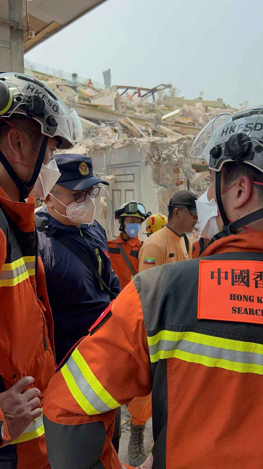 保安局在facebook專頁表示,特區救援隊自昨日抵達曼德勒后立即展開搜救,與其他隊伍協調后,前往多個區域進行現場評估和快速搜索,并在Chan Aye thar san及Mahar Aung Myay兩個災區進行救援。 救援隊再于晚上派出11人小隊,在曼德勒皇宮附近的一棟建筑物使用技術搜索工具和爆破工具協助搜救。 搜救行動通宵進行,仍然持續中。