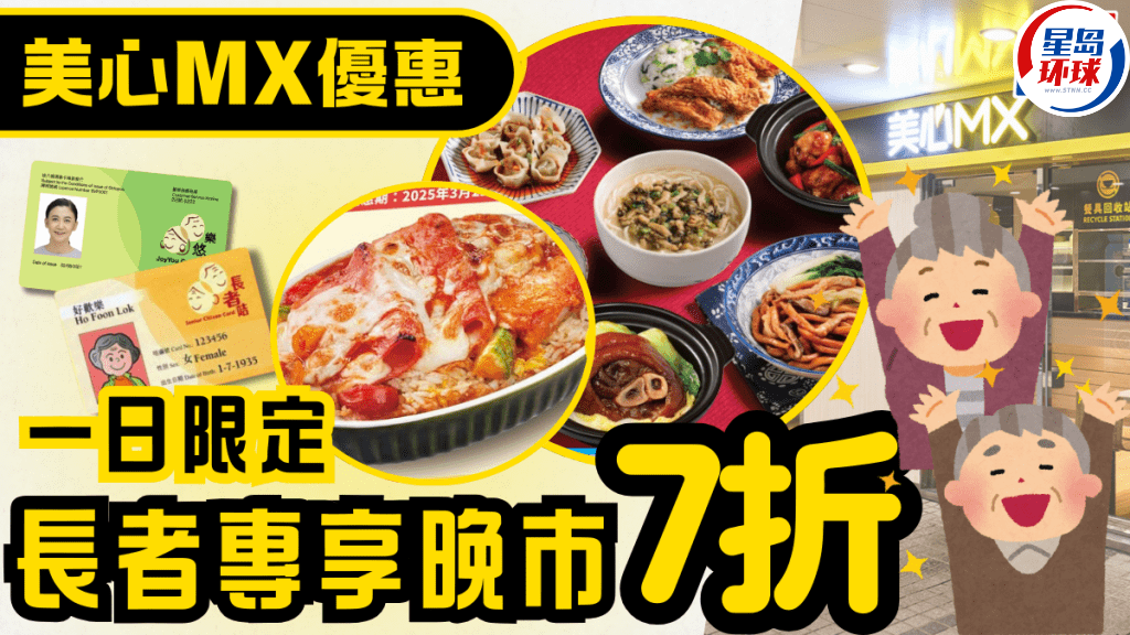 美心長者優惠又來了!美心MX與美心Food2特別推出每月一次的長者專屬優惠,4月3日(星期四)將再次為長者朋友帶來晚市7折的驚喜!凡持有長者咭、樂悠咭等合資格證件,即可于當日下午5時起享受堂食或外賣7折優惠,讓老友記以更實惠的價格享受豐富美味的餐點!