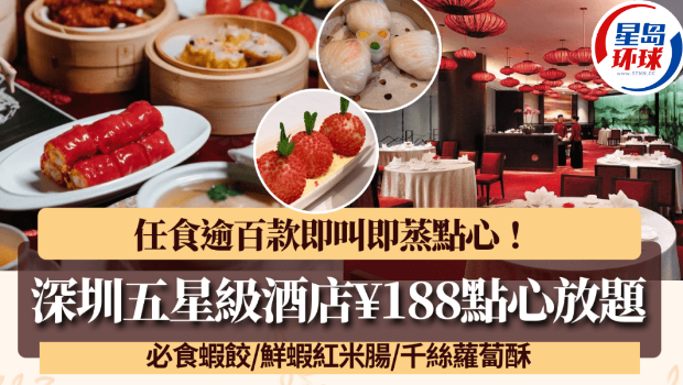 深圳香格里拉酒店點心放題¥188起!深圳五星級酒店深圳香格里拉旗下中菜廳“香宮”主打精致粵菜,近年亦有供應午市點心放題,每位¥188就可以任食超過100款粵式點心,包括水晶鮮蝦餃、鮮蝦紅米腸、奶黃芝士荔枝球、荔芋蒸排骨、流沙箭豬仔等,手工制作即叫即蒸,獲不少食客大贊點心款式精致美味,而且性價比高,下次北上深圳想嘆一盅兩件不妨一試!