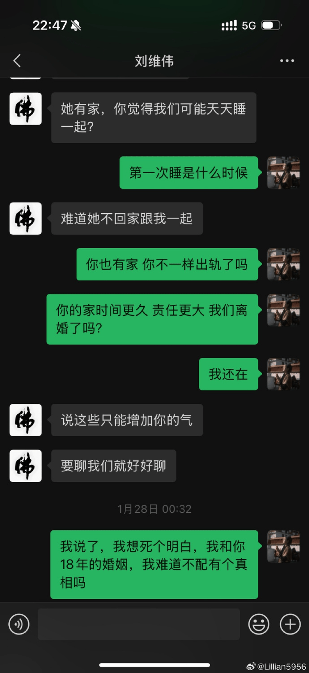 李艷在社交媒體曬出多張圖片,其中包括丈夫劉維偉的出軌時間線、夫妻兩人之間的微信聊天紀錄和李艷與青島男籃總經理張北海的聊天紀錄。