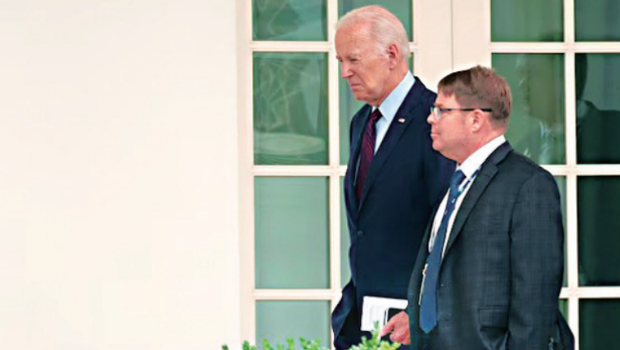 ▲共和黨眾議員指責,白宮醫生奧康納為了“保護拜登家族”而罔顧專業操守。圖為2023年中拍攝,拜登與他的醫生奧康納在白宮散步。 美聯社資料圖片