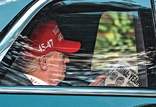 ▲總統特朗普5日抵達佛羅里達州特朗普國家高爾夫球俱樂部時,正在車上翻閱《紐約郵報》。 美聯社