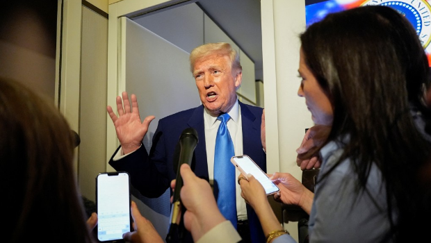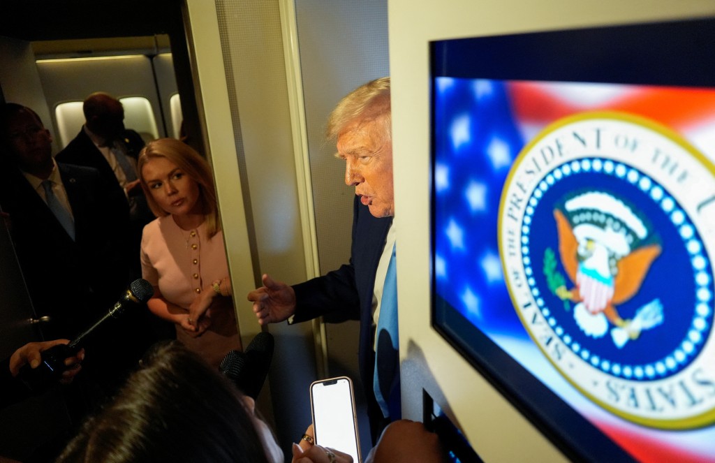▲特朗普在空軍一號上接受記者訪問,再談關稅問題。路透社