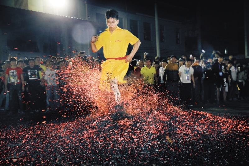 ▲水店村“下火?!眱x式上,勇者從火海中飛奔。