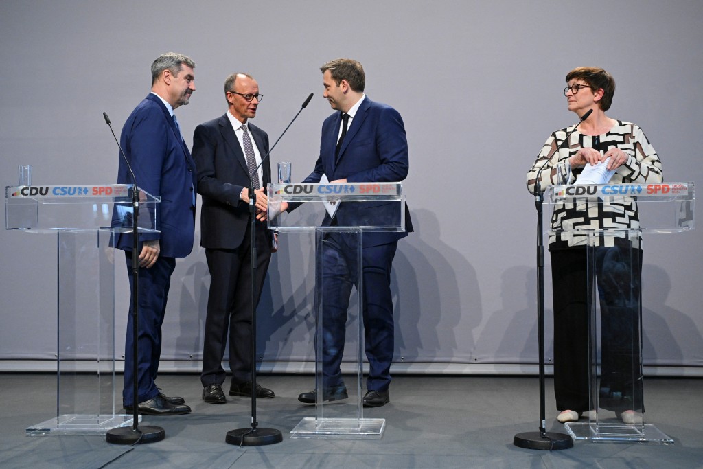 德國保守派基督教民主聯盟與基督教社會聯盟組成的聯盟黨,以及中間偏左的社會民主黨宣布達成共組政府的協議。領導基民盟的總理候選人默茨(Friedrich Merz)表示,新政府將帶領德國、以至歐盟,變得更強大。