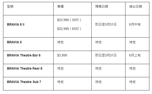 ▲將于6月中旬登場的BRAVIA 8 II備有55吋及65吋選擇。