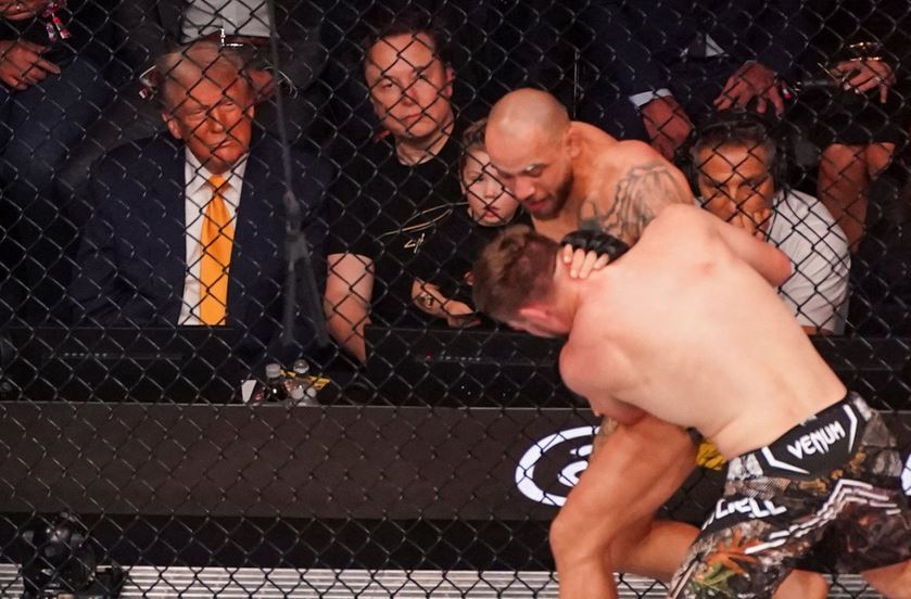 ▲特朗普上周六前往觀看MMA比賽。美聯社