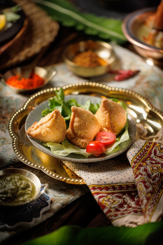 像是白咖喱虎蝦的醬汁,用奶酪及忌廉調配咖喱,再用香料、香茅和香草調味,分量恰到好處,不會搶去虎蝦的鮮味,可配印度香米或印度烤餅享用。 圓錐形的香料羊肉咖喱角,餡料混合了羊肉碎、番茄及洋蔥等,是印度當地甚有代表性的街頭美食。