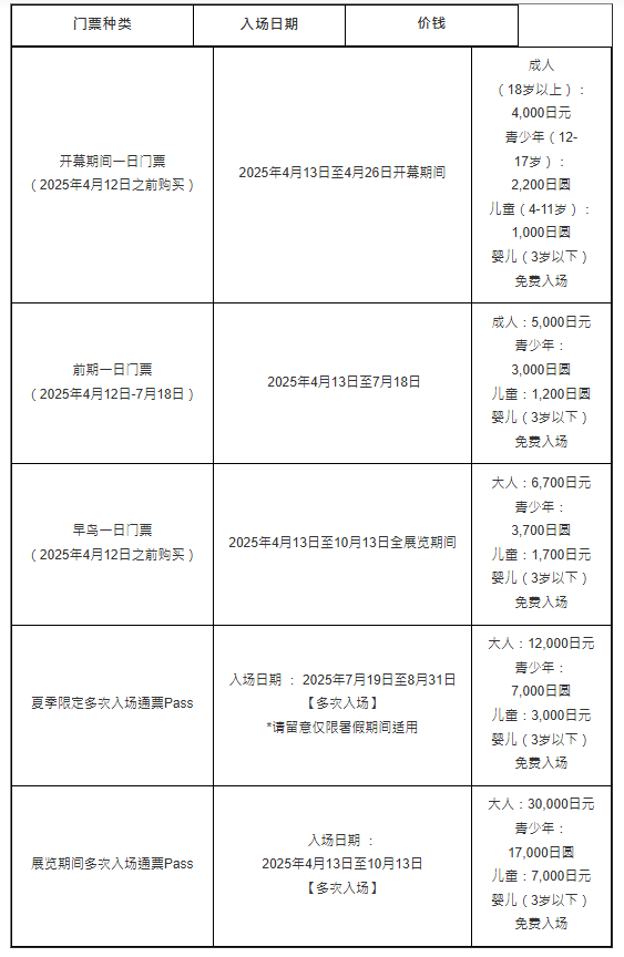 2025大阪萬博門票主要采用“電子門票”方式,于官網即可購買。于官網注冊及登錄“萬博ID”即可線上購買門票。購票后可選擇想要前往的日期(參觀日期預約可于預定參觀日期前6個月開始預約)當日出示QR CODE即可入場?,F場亦設有柜臺提供即場購票,不過額滿即止,而且無法提早預約場館,建議有興趣前往的大家預先買好門票。