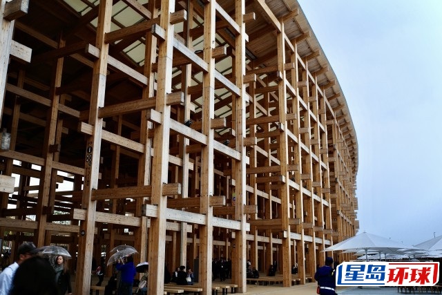 大阪世博另一亮點便是“大屋根”(Grand Roof),全長超過2公里、高12至20米,總面積達6萬平方米,被《健力士世界紀錄大全》認定為“全世界最大的木造建筑”。該結構以圓形環繞會場,由建筑師藤本壯介設計,在現代建筑中融合日本傳統結構工法,特別采用傳統的“貫”榫接技術,并選用了采用日本國產杉木、檜木及部分歐洲赤松,展現了日本建筑的精湛工藝。