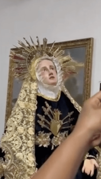 ▲在教宗方濟各于復活節星期一(21日)逝世前夕,哥倫比亞一座教堂的圣母瑪利亞雕像被拍攝到“流淚”,引發信徒對神蹟的熱議。