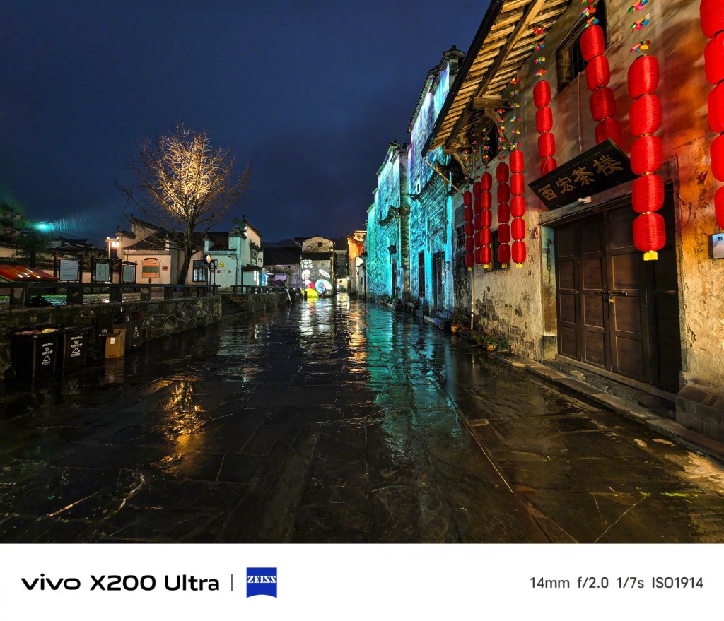 X200 Ultra令人思想不到地方還有超廣角,當主要對手普遍采用廣角主鏡+遠攝雙大底策略,此機一口氣用上3顆大底感光,超廣角甚至且跟廣角主鏡是同一顆1/1.28吋Sony LYT818,進光量較X100 Ultra大增181%,至于焦距及光圈分別為14mm及F2.0。此外,超廣角同樣具備第3代vivo VCS仿生光譜技術,且有著之前只見于主鏡及遠攝的OIS光學防震(CIPA 5.0級),為超廣角夜攝提供更穩定效果。