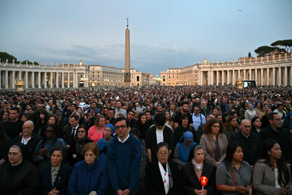 ▲信眾在圣伯多祿廣場哀悼教宗。法新社