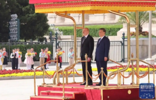 4月23日上午,國家主席習近平在北京人民大會堂同來華進行國事訪問的阿塞拜疆總統阿利耶夫舉行會談。兩國元首宣布,建立中阿全面戰略伙伴關系。