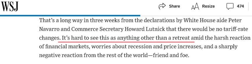 這篇社評中的核心觀點其實很直白,認為自4月初宣布對全世界加征“對等關稅”,并對中國進行極限施壓以來,白宮在過去的這20多天一直在不斷做出調整:先是給除中國以外的其他一些國家寬限90天,然后是給蘋果、英偉達等大企業開后門,再到如今準備大幅減輕對中國的關稅。