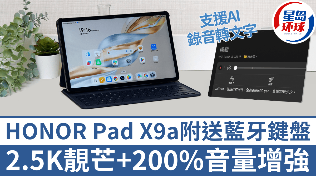 HONOR平板向來不乏抵玩之作,如新近推出的Pad X9a,11.5吋屏幕解像度提升至2.5K,畫質鮮艷細致,配合兩側可增強200%音量的4喇叭,聲畫效果出色非常適合煲劇看片,現在入手更送價值$599的藍牙鍵盤,娛樂以外,亦可用來處理文書工作。