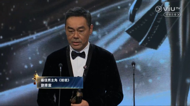22:34 劉嘉玲頒發“最佳男主角”,得獎者是《爸爸》的劉青云,臺下的《爸爸》導演翁子光眼泛淚光。