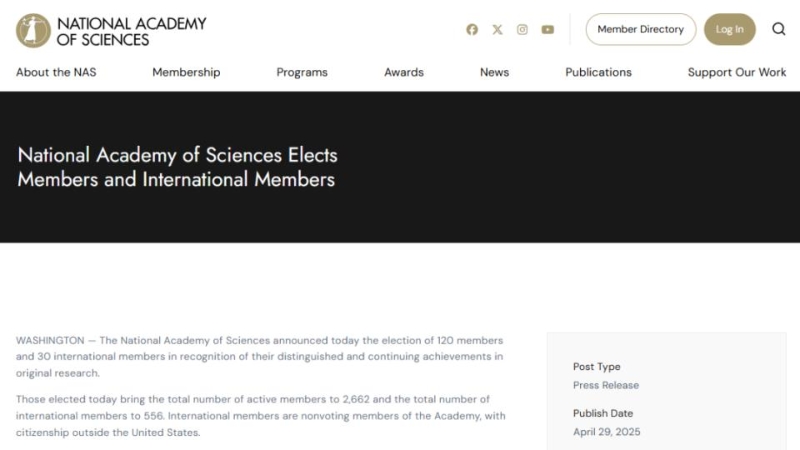 到現在為止,美國國家科學院院士共有2662名院士,556名外籍院士。